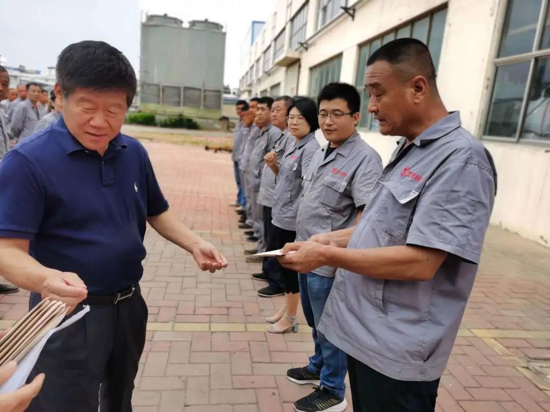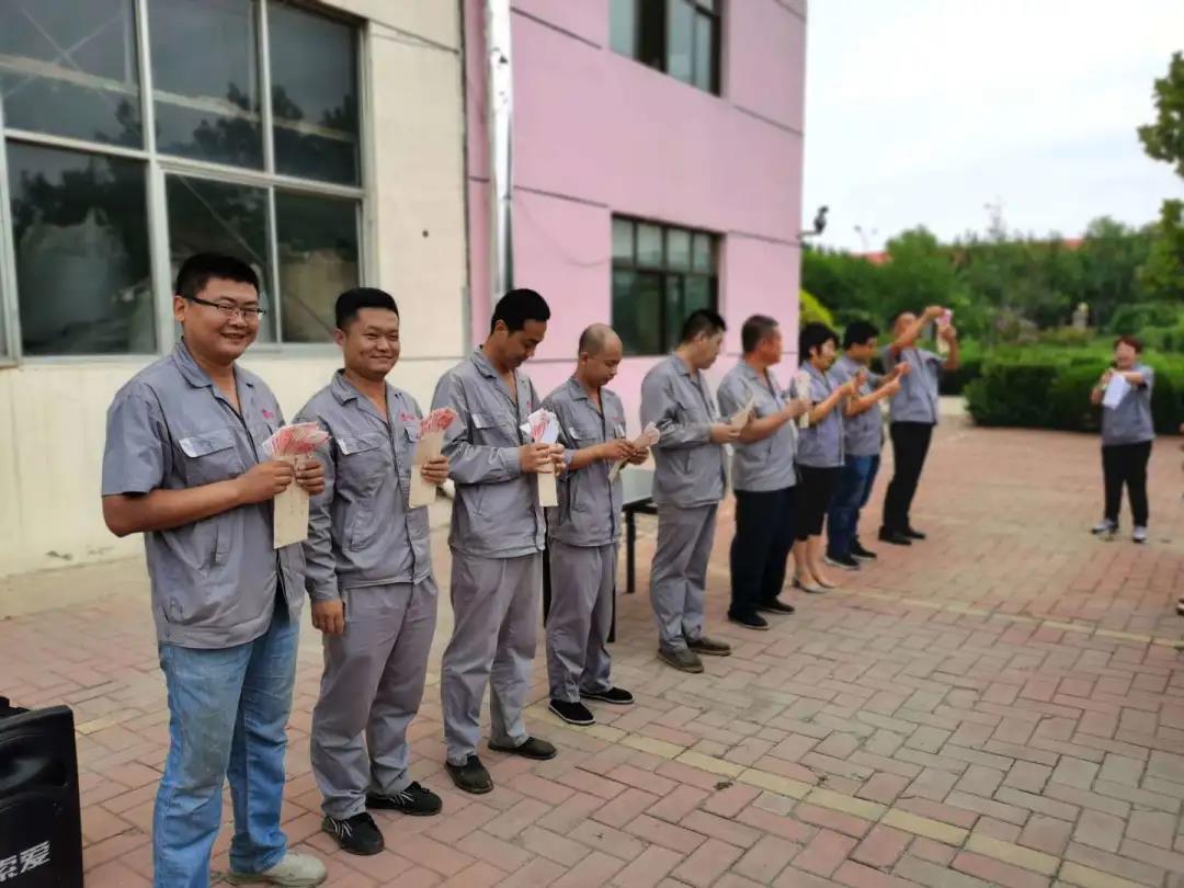 接下來是6月份工分目標(biāo)達(dá)成獎(jiǎng)勵(lì)發(fā)放環(huán)節(jié),生產(chǎn)系統(tǒng)及行政后勤部門都達(dá)到了我們最初定制的月度目標(biāo),由董事長向各部門負(fù)責(zé)人發(fā)放現(xiàn)金獎(jiǎng)勵(lì),最后由各部門負(fù)責(zé)人分發(fā)到每位員工手中。